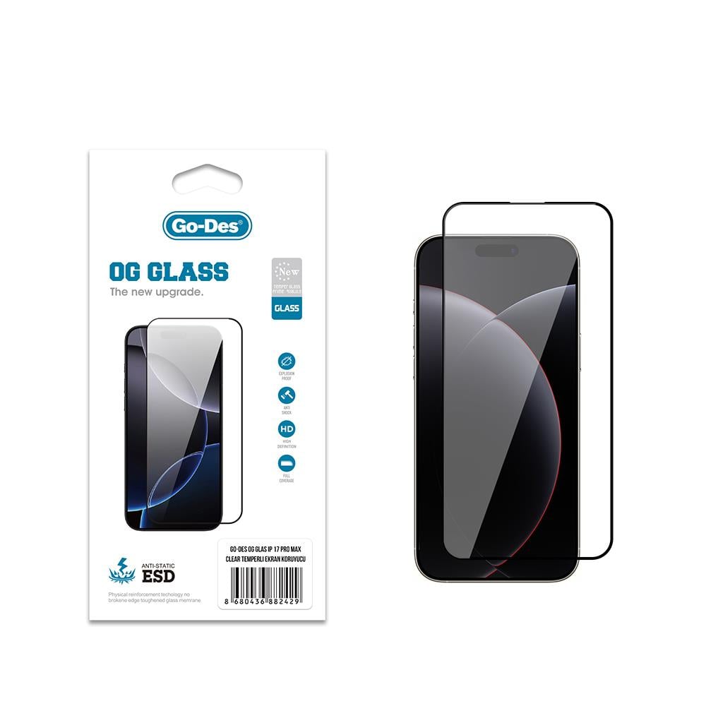 iPhone 17 Pro Max Go Des OG Glass Antistatik Temperli Cam Ekran Koruyucu